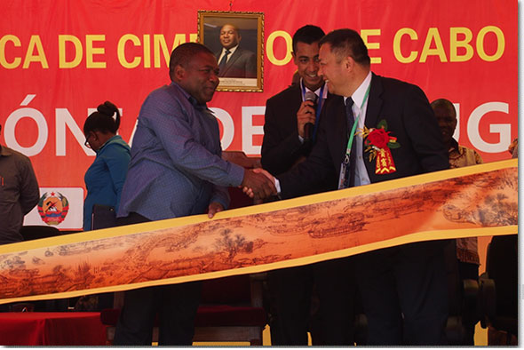 紐西總統在慶典儀式上致辭,對項目的順利投產表示祝賀,對中國企業在莫桑比克的發展興業表示支持。集團董事長成標在致辭時宣布捐贈1000噸水泥用于德爾加督省政府發展社會公益事業。